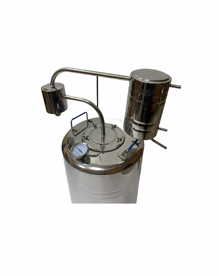 Аппарат имеет не разборный сухопарник.Встроенный термометр на баке позволит вам следить за температурой в баке и не допускать перегрева или недогрева. Ведь самый лучший самогон выходит при температуре от 76 до 96 градусов (в зависимости от браги).